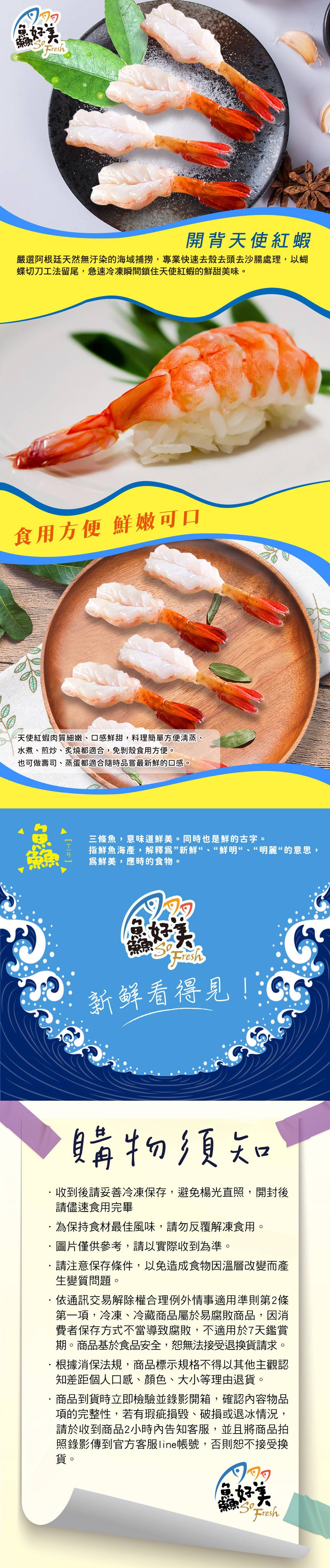 商品詳情 開背天使紅蝦220g/盤(20尾)產品重量:220g/盤(20尾)商品產地:阿根廷保存方式:冷凍-18℃保存期限:冷凍24個月 開背天使紅蝦220g/盤(20尾) TWD $560 TWD $278